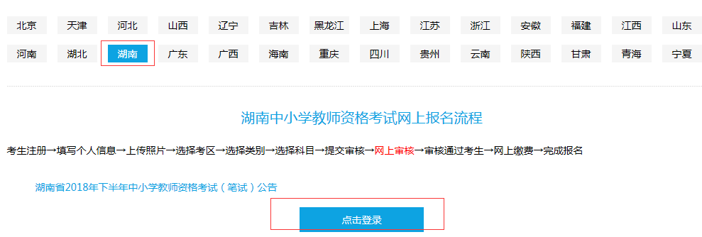 考生进入报名系统后,选择好报名省份,点“点击登录”。